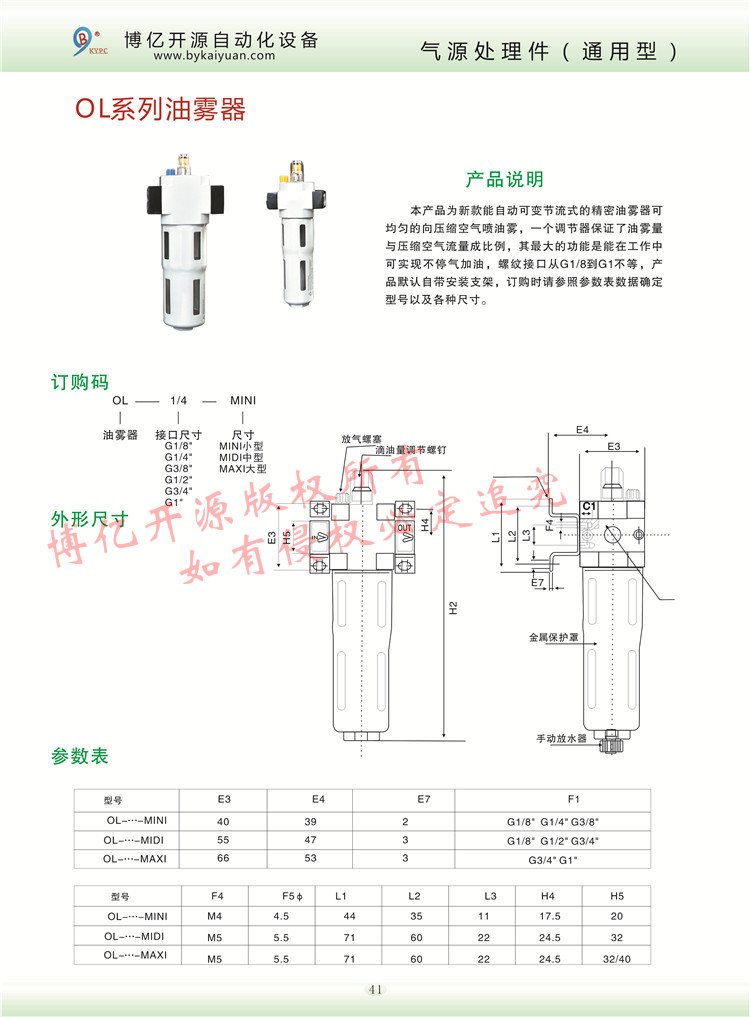 OL系列油霧器加油器,也有客戶稱(chēng)之為OF油杯,其主要的尺寸由G1/8到G1寸之間,新款的調(diào)節(jié)器保證了油霧量和空氣的比例,更多的技術(shù)咨詢請(qǐng)聯(lián)系本公司技術(shù)部:0371-85612788。