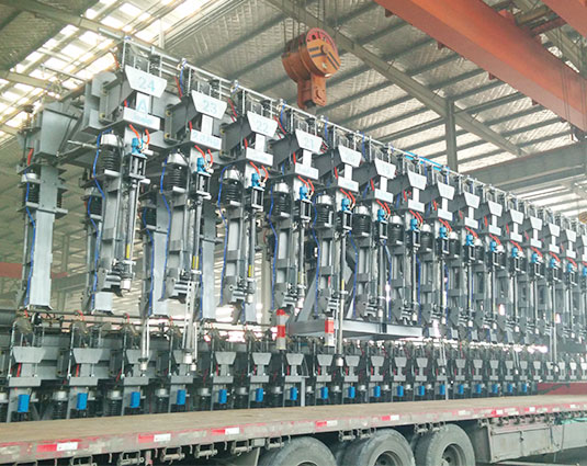 2、電解槽母線轉(zhuǎn)接框架共有10-24個陽極夾具,每個陽極夾具的夾持重量不少于3.2噸。