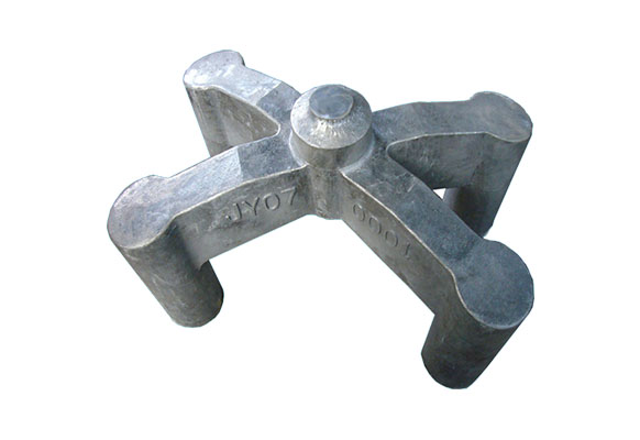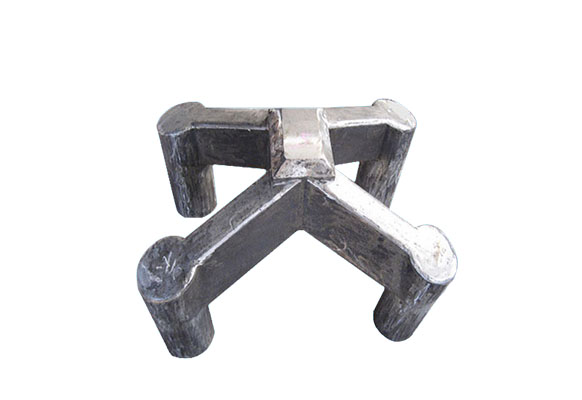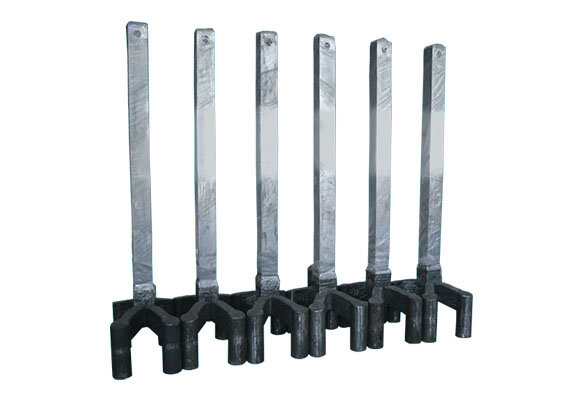 陽極鋼爪的上部連接爆炸塊和導(dǎo)桿機(jī)組,有兩爪,三爪,四爪,六爪,八爪等型號。為了確保與陽極導(dǎo)桿的牢固連接,澆道不能在鋼爪的上部。
